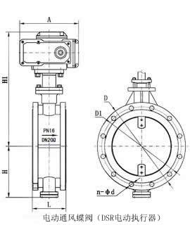 電動(dòng)煙道蝶閥廠家外形及連接尺寸: